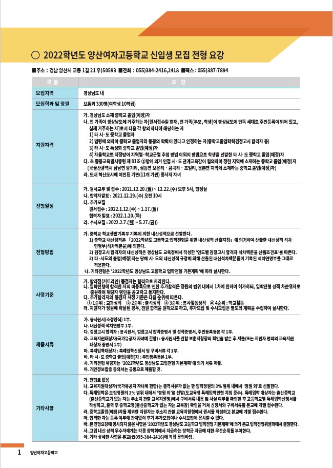2021. 양산여고 홍보 책자