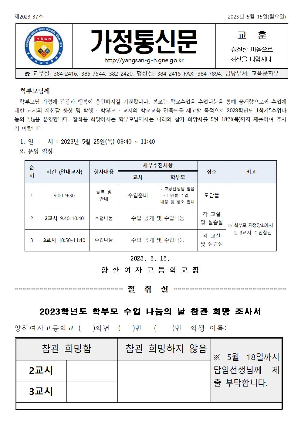 2023학년도 1학기 수업나눔의 날 안내