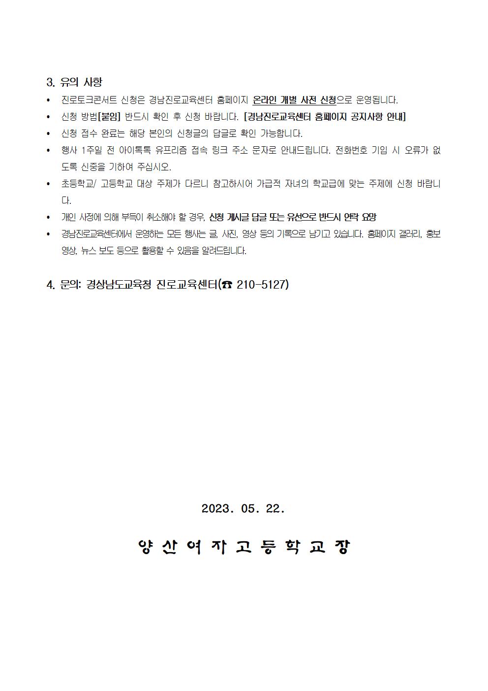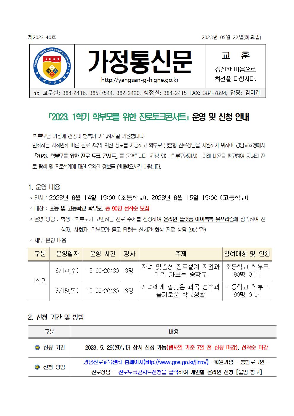 2023. 1학기 학부모를 위한 진로토크콘서트 운영 및 신청 안내