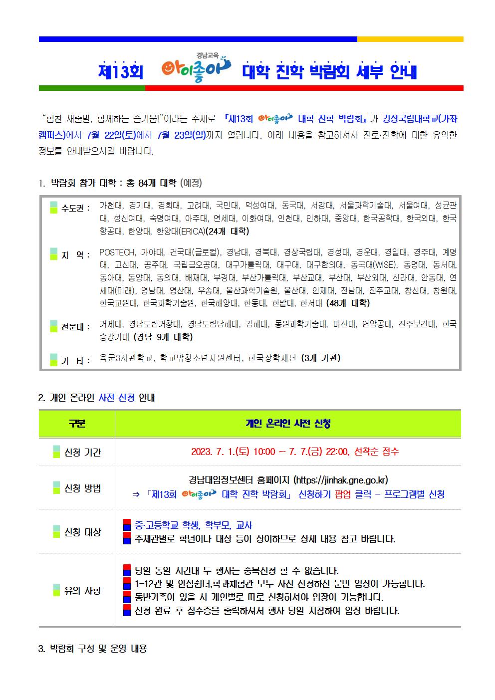 [2023-53]제13회 경남 아이좋아 대학 진학 박람회 세부 안내.hwp