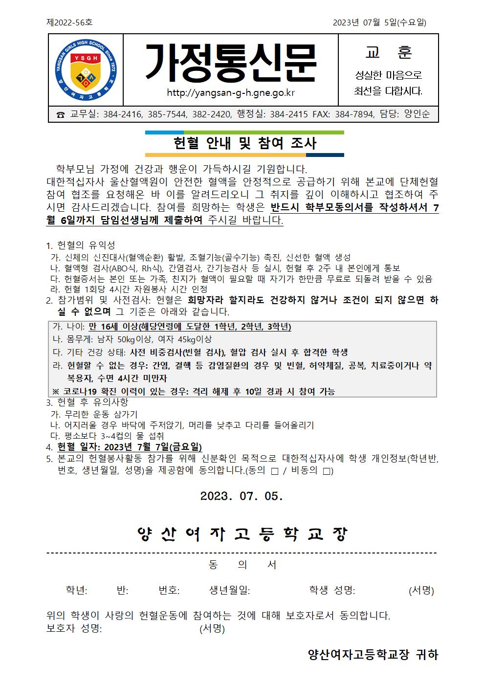 [2023-56]2023학년도 헌혈 안내 및 참여조사.hwp