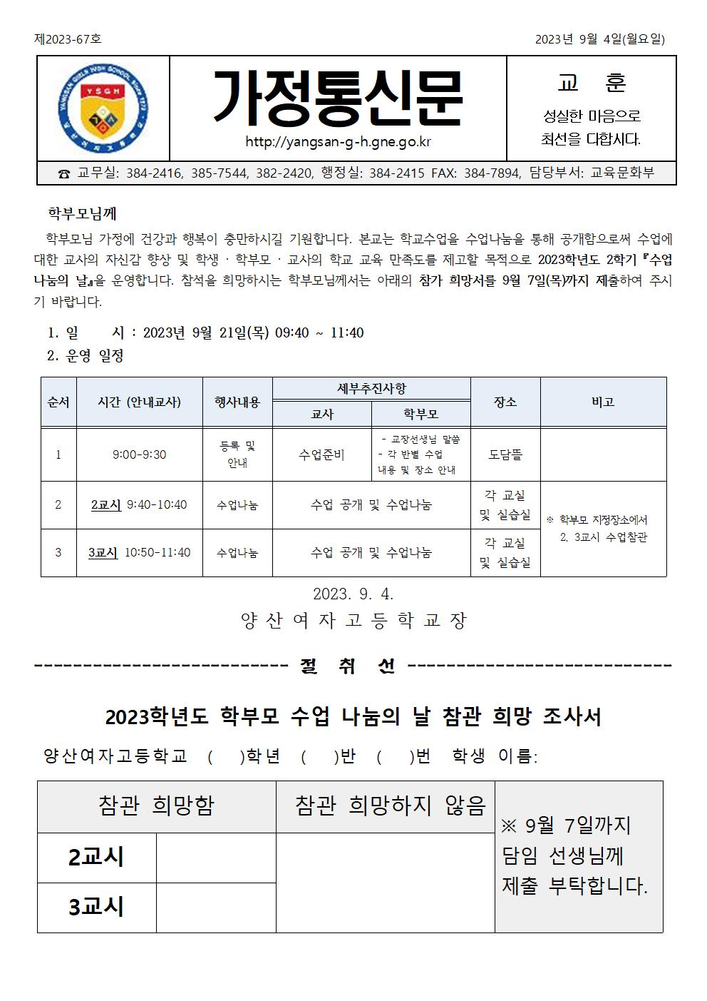 [2023-67]2023학년도 2학기 수업나눔의 날 안내.hwpx