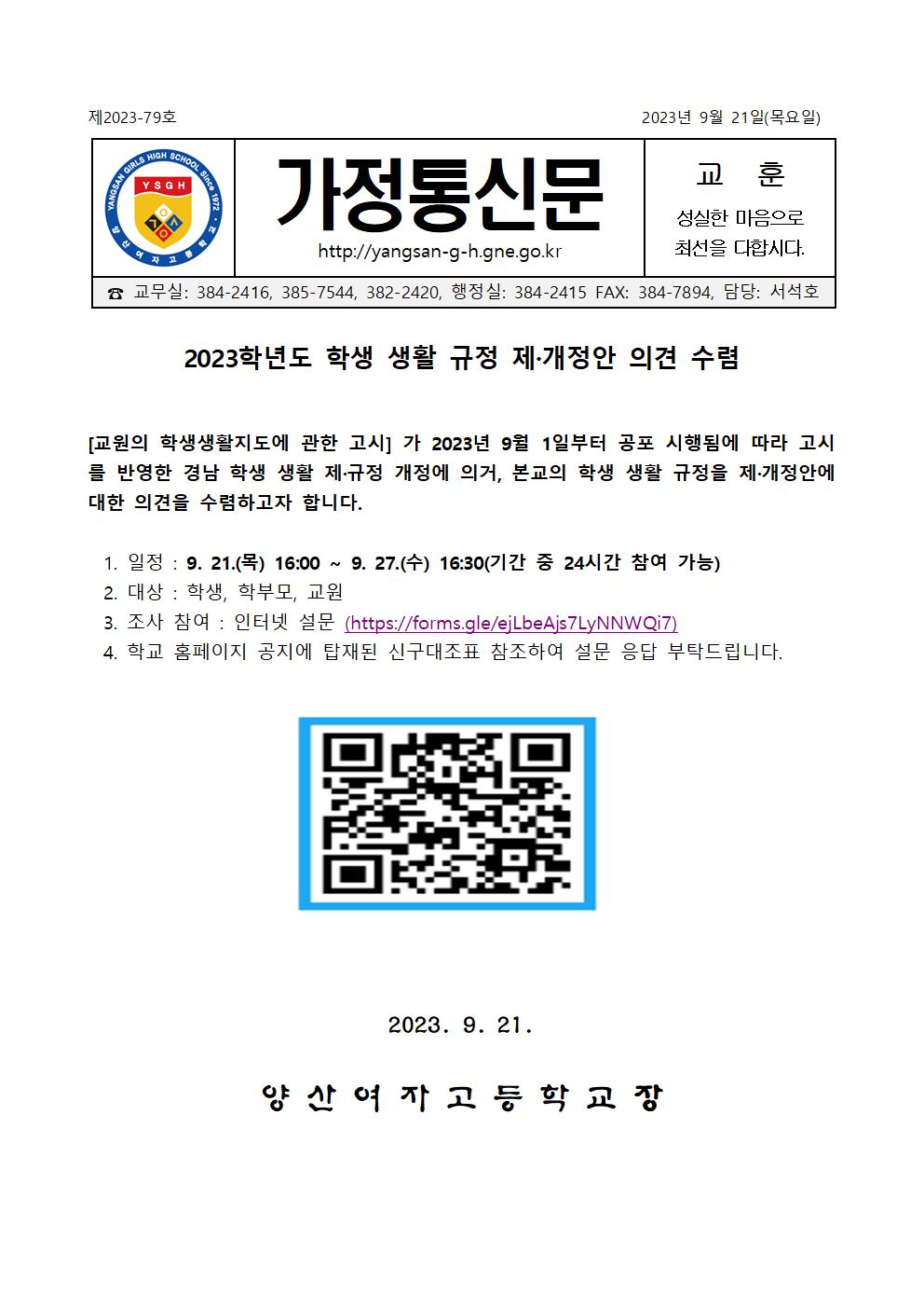 [2023-79]2023학년도 학생 생활 규정 제·개정안 의견 수렴 안내문.hwp