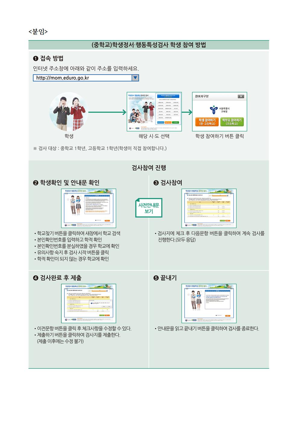 2024학년도 학생정서·행동검사가 1학년 학생 대상으로 실시 됩니다.