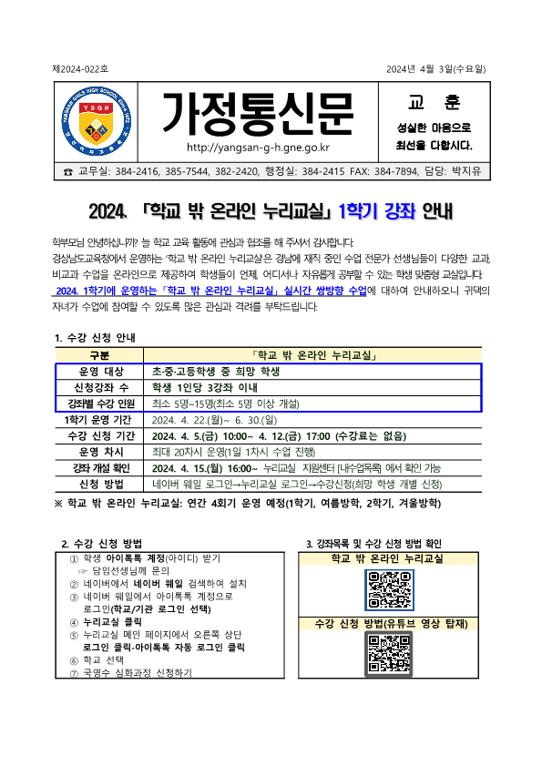 [2024-22]2024. 학교 밖 누리교실 수강신청 안내 가정통신문.hwp