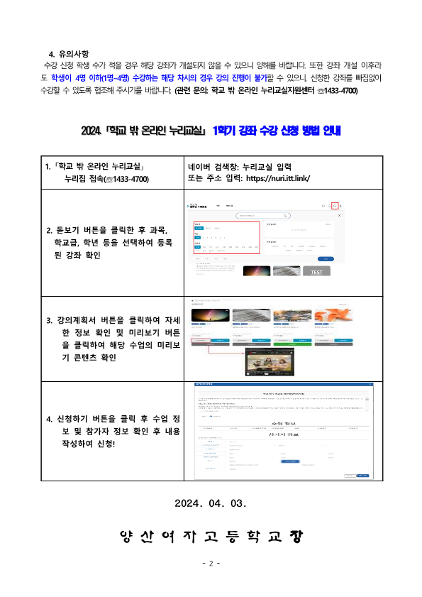 2024. 「학교 밖 온라인 누리교실」1학기 강좌 안내