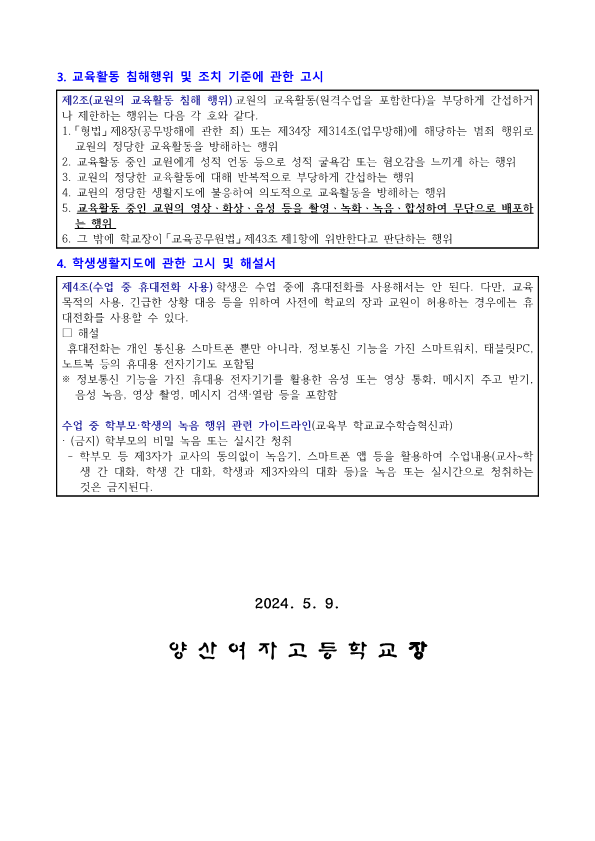 교육활동 중 불법 녹음(촬영) 금지 안내
