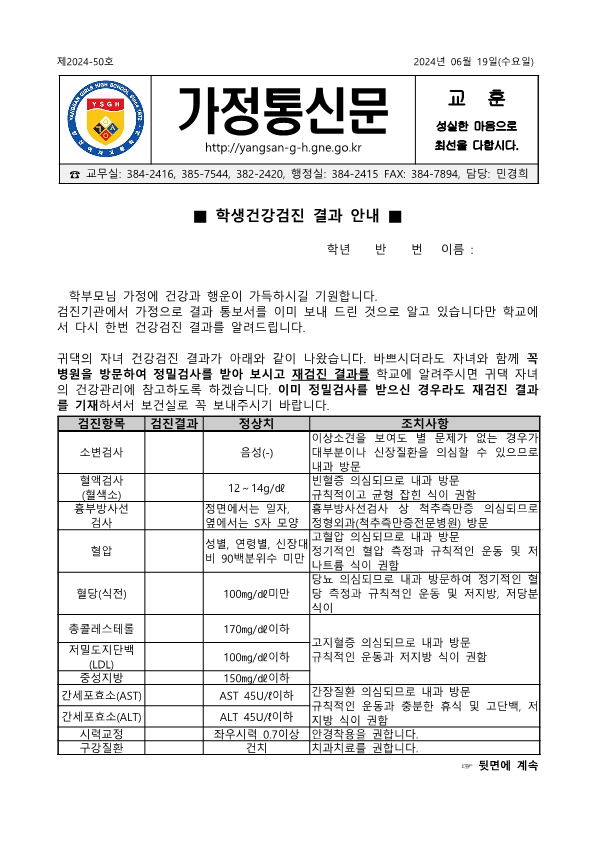 [2024-50]2024학년도 학생건강검진 결과 안내.hwp