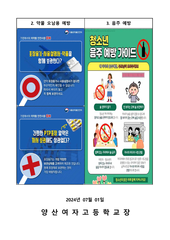 2024년도 1학기 흡연, 음주, 약물 예방 안내