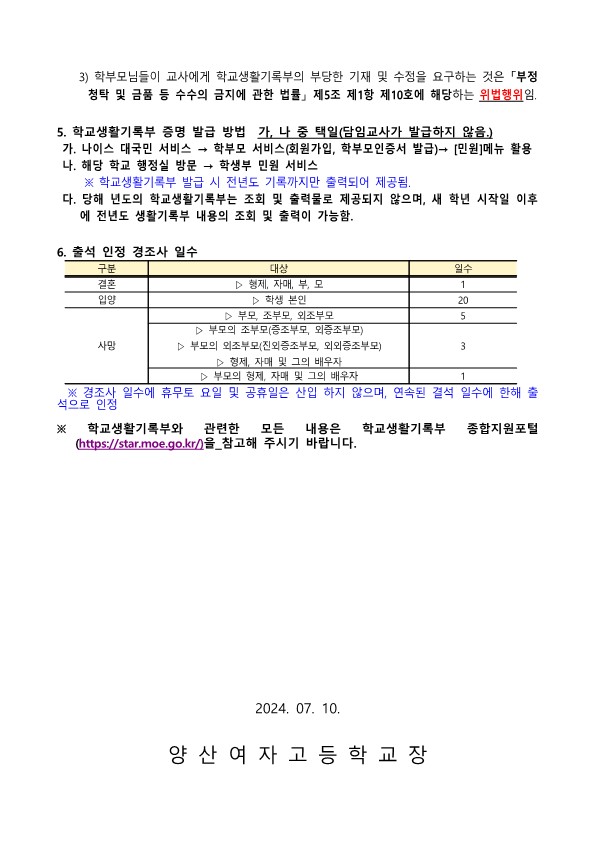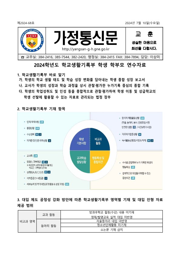 [2024-68]2024학년도 학교생활기록부 학생 학부모 연수 가정통신문.hwp
