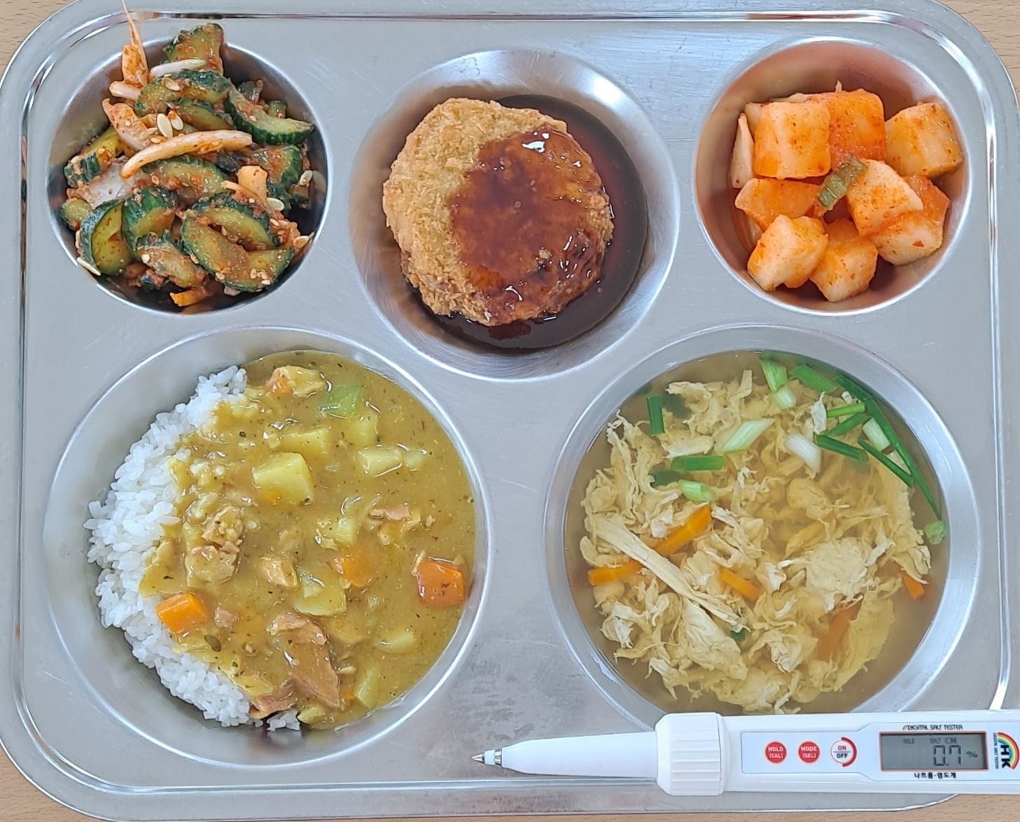 파니르카레(2.5.6.10.12.13.15.16.18)계란실파국(1.5.6.9)치즈볼카츠(1.5.6.10)오이양파무침(13)깍두기(9)* 에너지/단백질/칼슘/철742.1/21.8/119.7/2.7