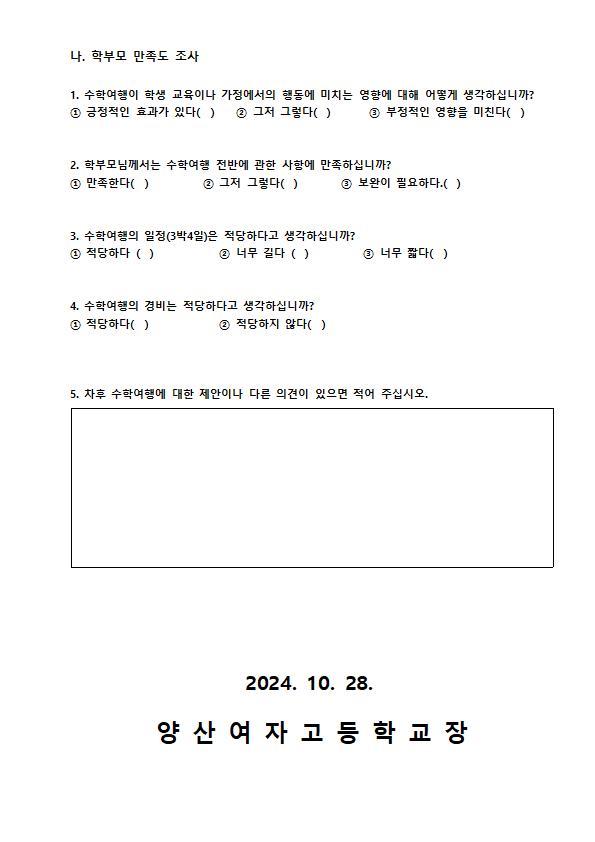 [2024-98]2024학년도 2학년 수학여행 만족도 조사 안내.hwp