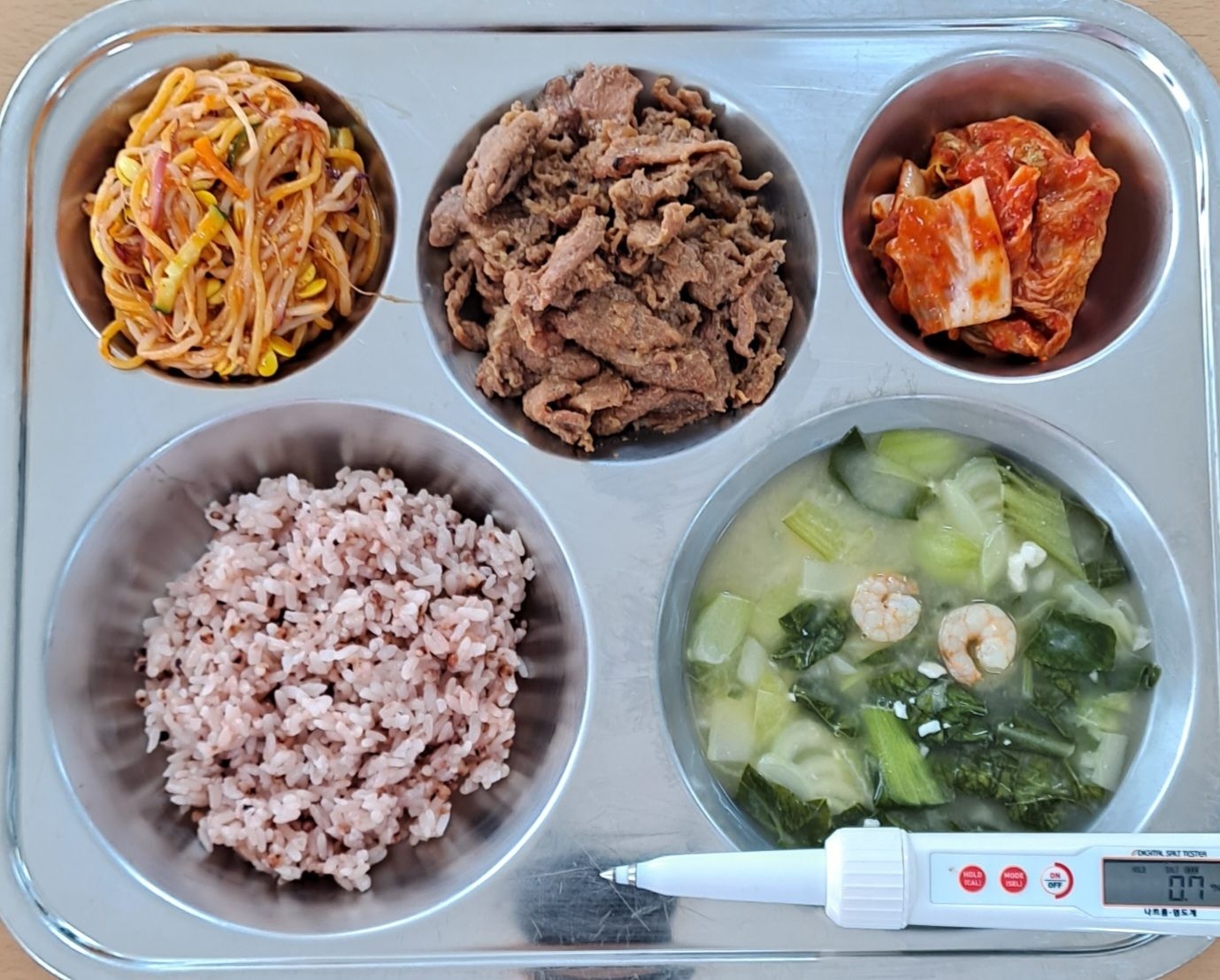 차수수밥연두부청경채새우국(5.6.9)직화간장불고기(10)콩나물비빔라면(1.2.5.6.10.13.15.16)배추김치(9)* 에너지/단백질/칼슘/철725.6/29.3/223.0/1.9