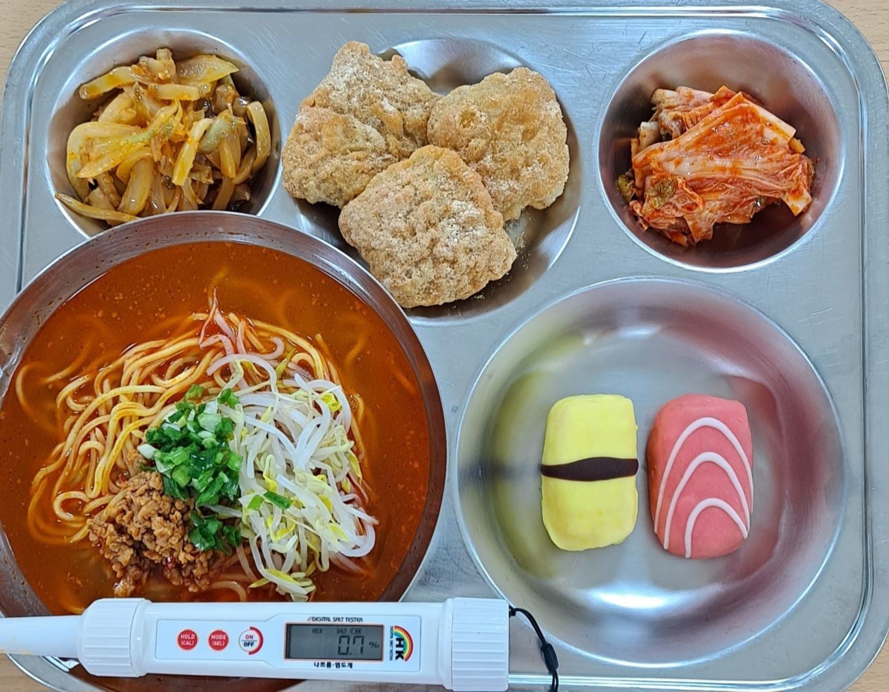 탄탄면(1.2.5.6.10.12.13.15.16.18)콩고물꿔바로우(1.5.6.10)짜샤이무침배추김치(9)스시도넛(1.2.5.6)* 에너지/단백질/칼슘/철732.7/27.8/292.8/7.0