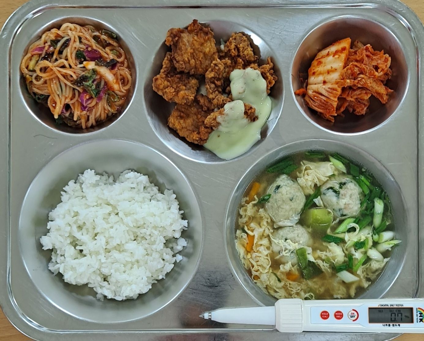 찹쌀밥굴림만두국(1.5.6.9.10.16.18)돼지갈비후라이드(10)쫄면야채무침(5.6.13)배추김치(9)* 에너지/단백질/칼슘/철716.1/38.1/254.2/4.8
