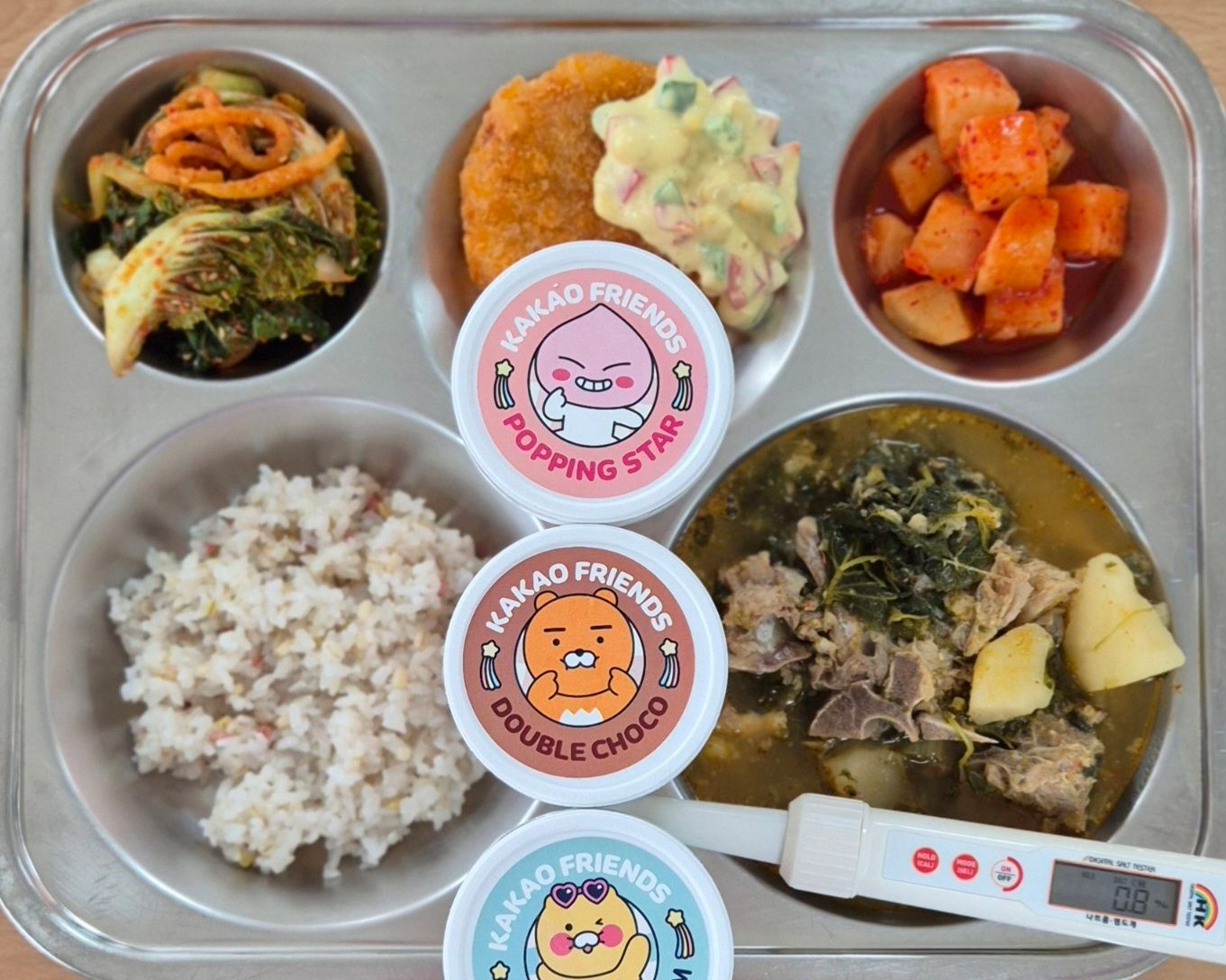 칠색보리밥등뼈감자탕(5.6.10)새우가스/콘소스(1.2.5.6.9.13)봄동겉절이(13)깍두기(9)컵아이스크림(1.2.5)* 에너지/단백질/칼슘/철730.3/22.5/170.5/2.3