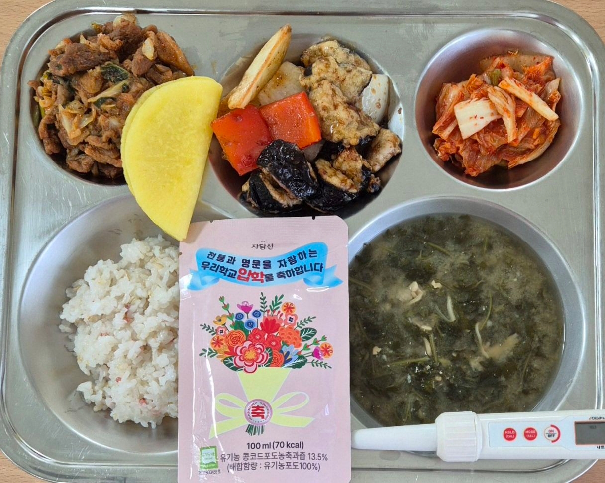 배추김치(9)유기농포도주스(13)* 에너지/단백질/칼슘/철737.6/24.6/145.1/5.5