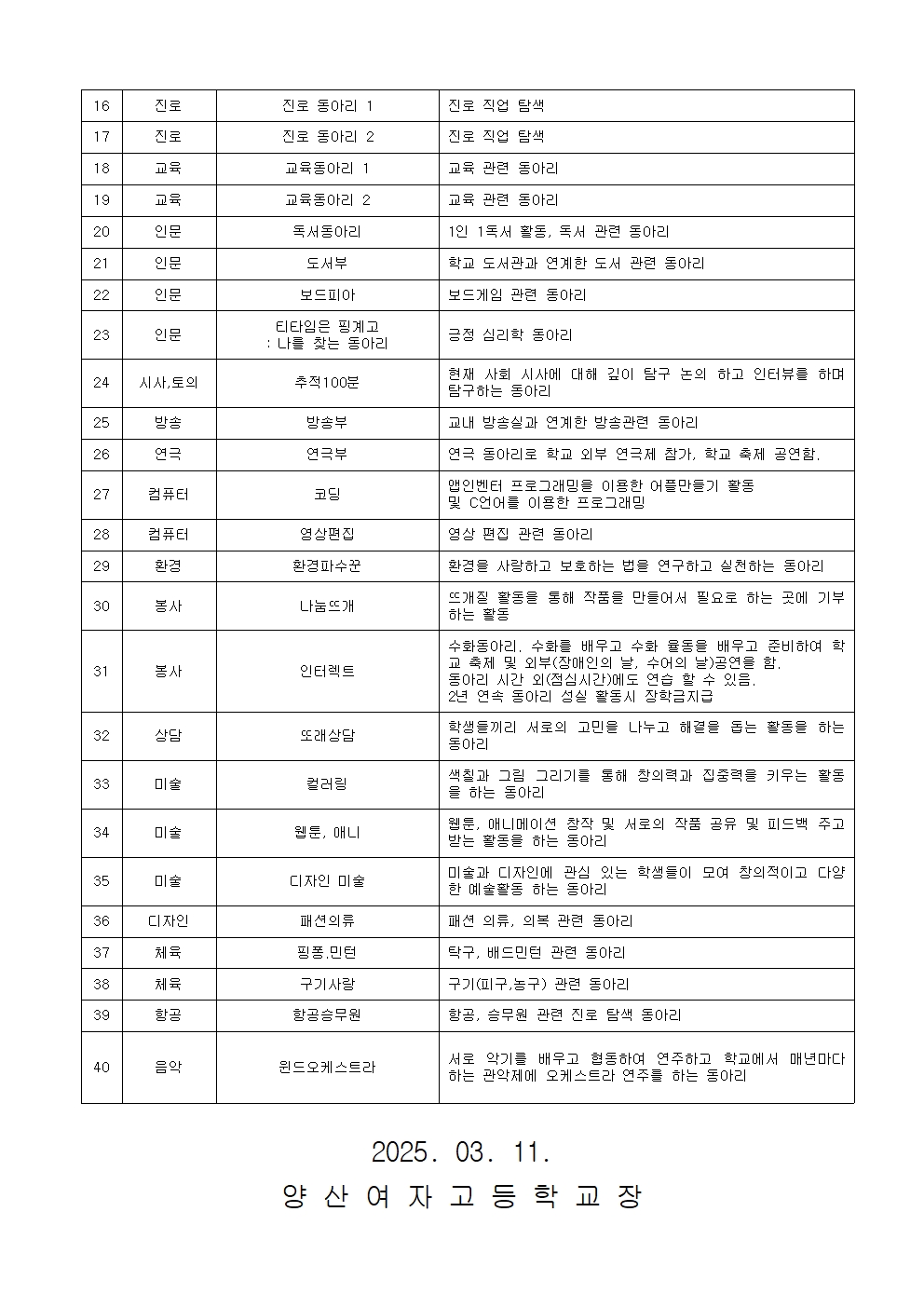 2025년 정규 동아리 안내