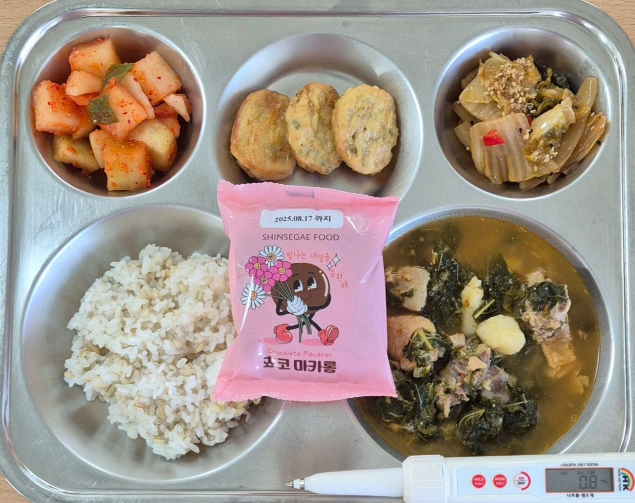 깍두기(9)초코마카롱(1.2.6)* 에너지/단백질/칼슘/철734.6/25.0/201.4/3.5