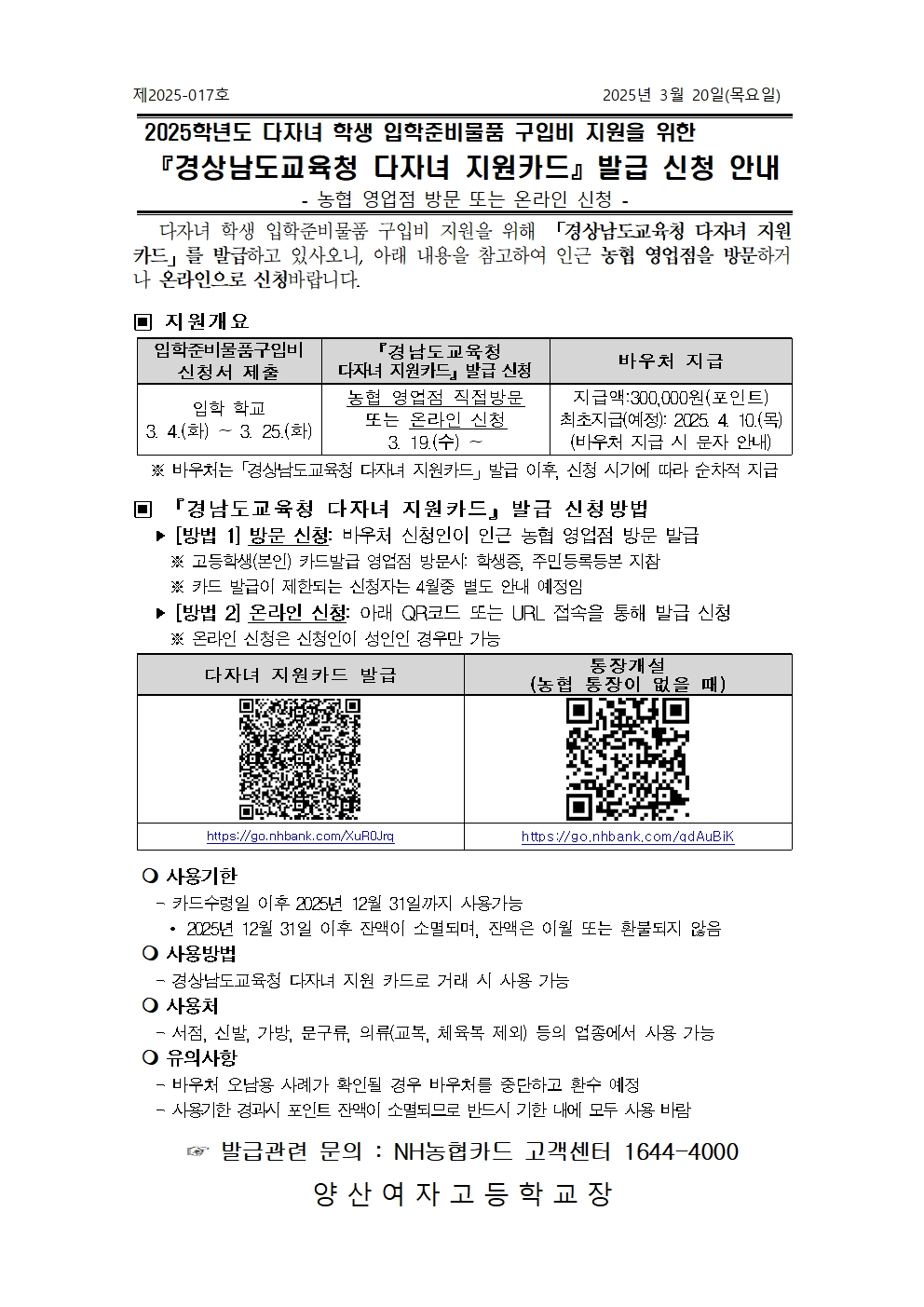 [가정통신문2025-17]2025학년도 다자녀 학생 입학준비물품 구입비 지원을 위한 경상남도교육청 다자녀 지원카드 발급 안내.hwp