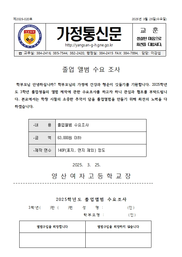 2025학년도 3학년 졸업 앨범 수요 조사