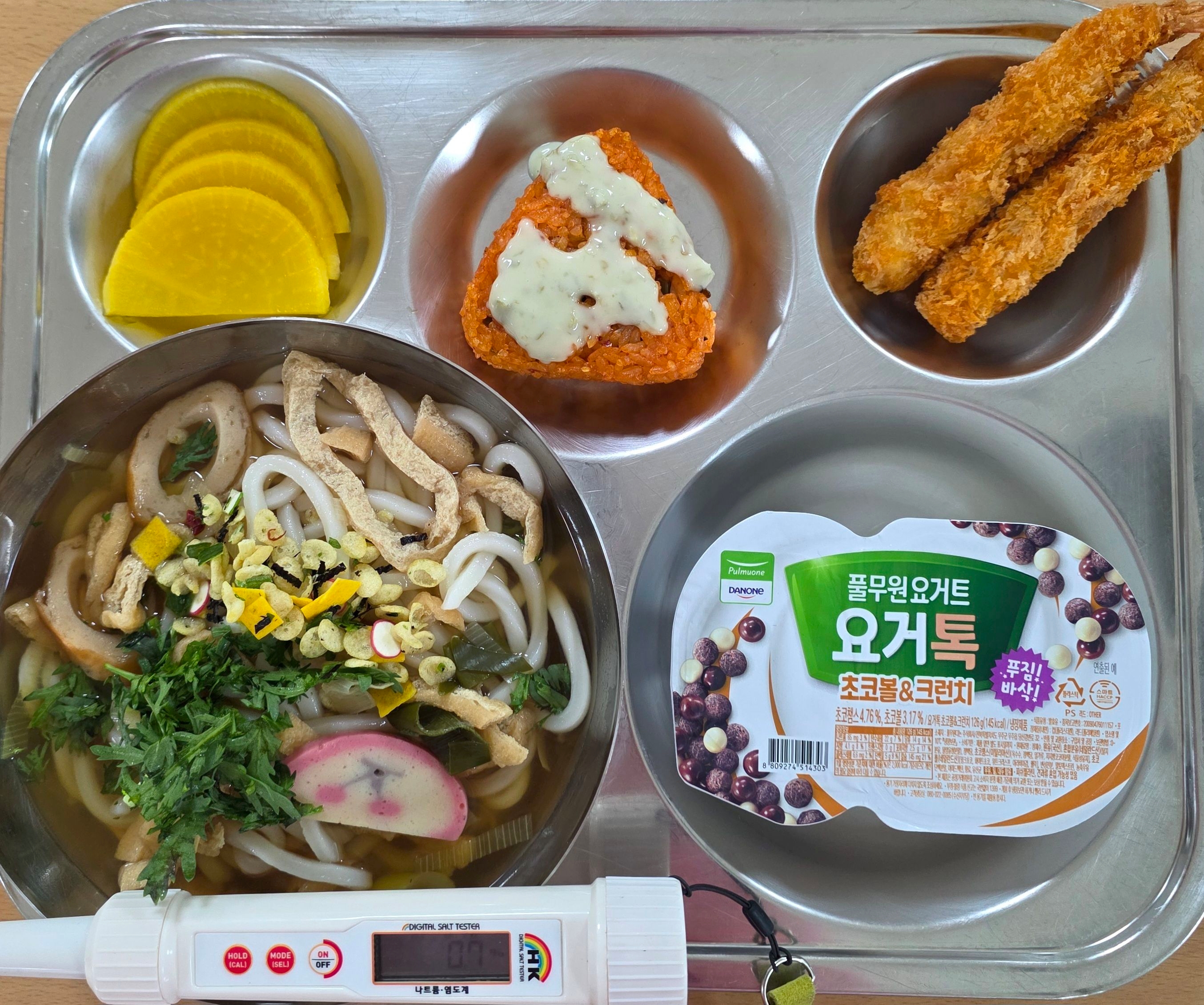 묵은지삼겹주먹밥(1.2.5.6.10)어묵우동(1.2.5.6.7.9.13.18)새우튀김(1.5.6.9)단무지요거트/초코볼(2)* 에너지/단백질/칼슘/철746.6/22.2/321.7/5.4