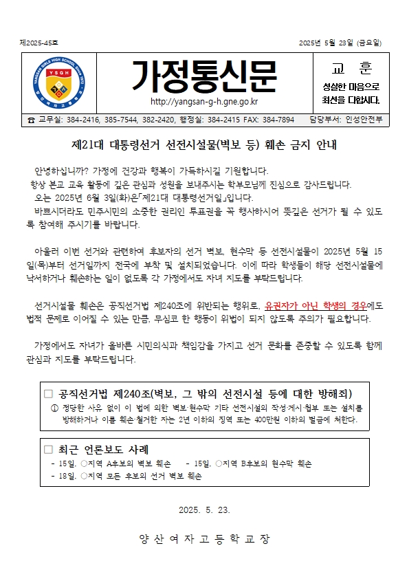 [가정통신문2025-45]대통령 선거 선전물 훼손 금지 안내.hwpx