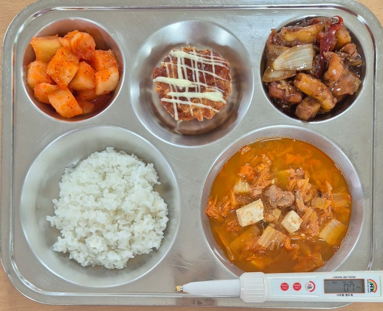 찹쌀밥참치김치찌개(5.9.16.18)안동식쪼림닭(5.6.13.15.18)불고기크로켓(1.5.6.10.12.13.16.18)깍두기(9)* 에너지/단백질/칼슘/철740.3/27.8/156.3/2.4