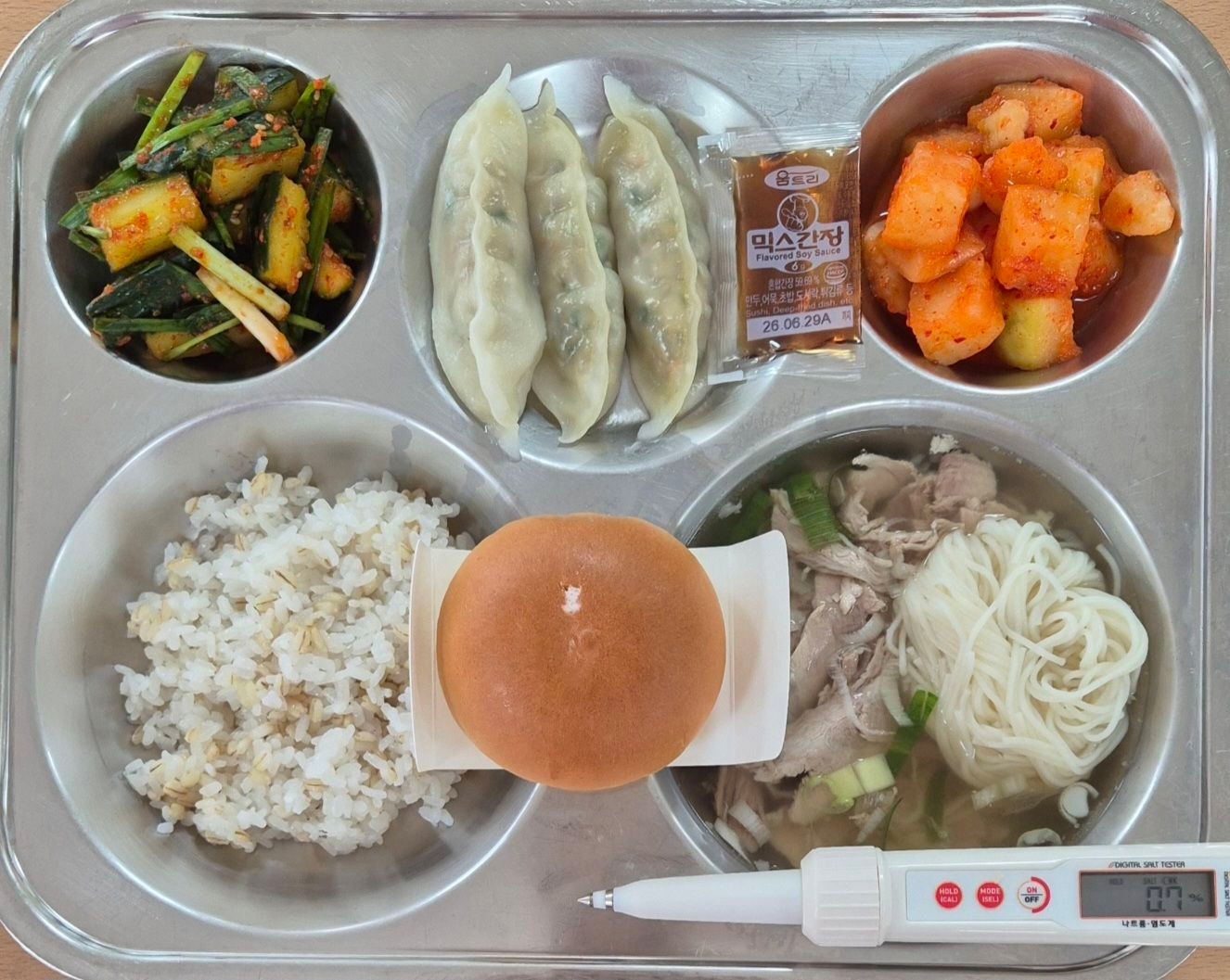보리밥맑은돼지곰탕(5.6.10)새우고기만두(1.5.6.10.16.18)오이부추무침(9.13)깍두기(9)딸기우유생크림빵(1.2.5.6)* 에너지/단백질/칼슘/철742.0/26.1/57.9/1.6