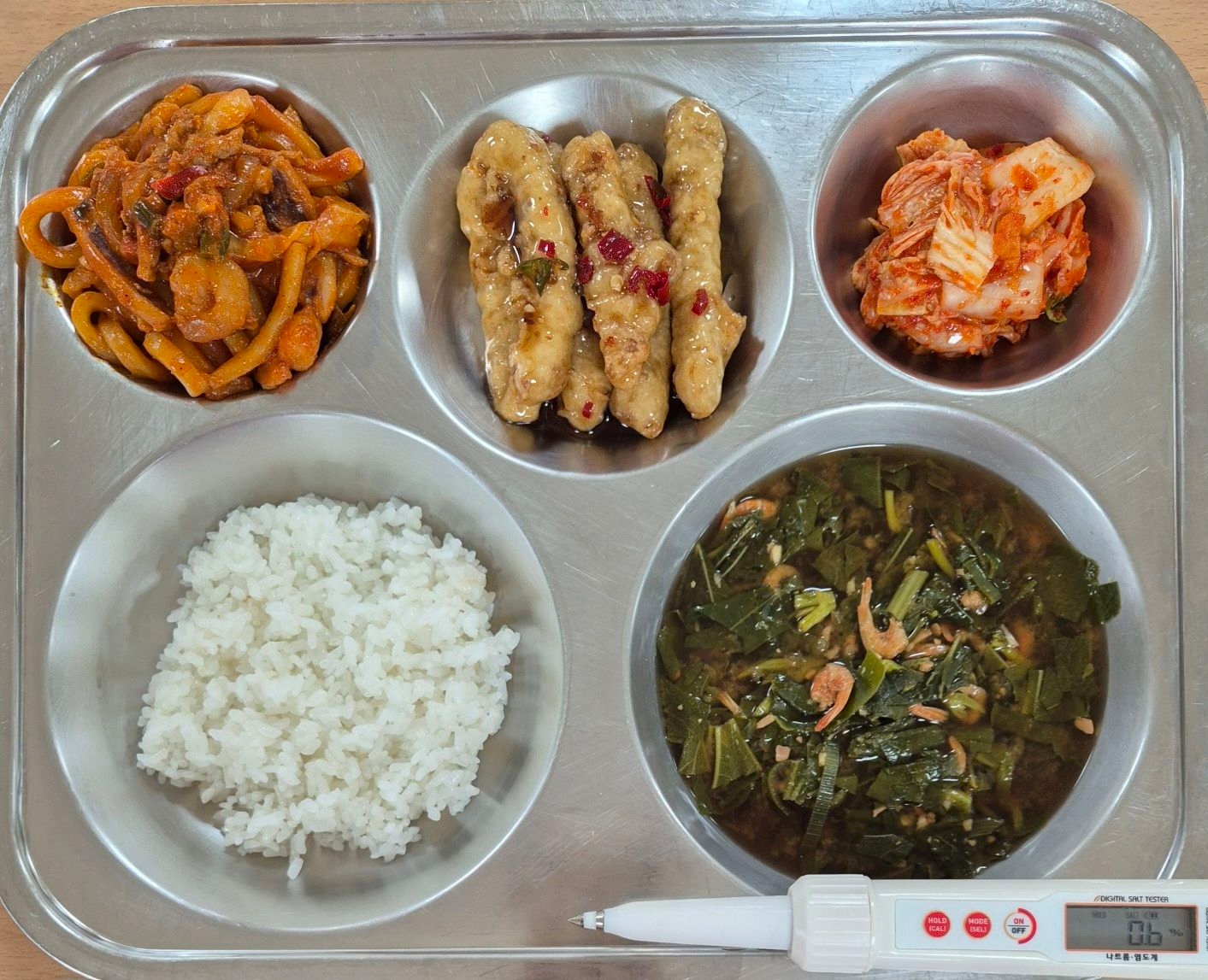 찹쌀밥건새우아욱국(5.6.9)맛쵸킹탕수육(1.5.6.10.13)볶음우동(5.6.10.17)배추김치(9)* 에너지/단백질/칼슘/철730.4/30.6/139.6/6.9