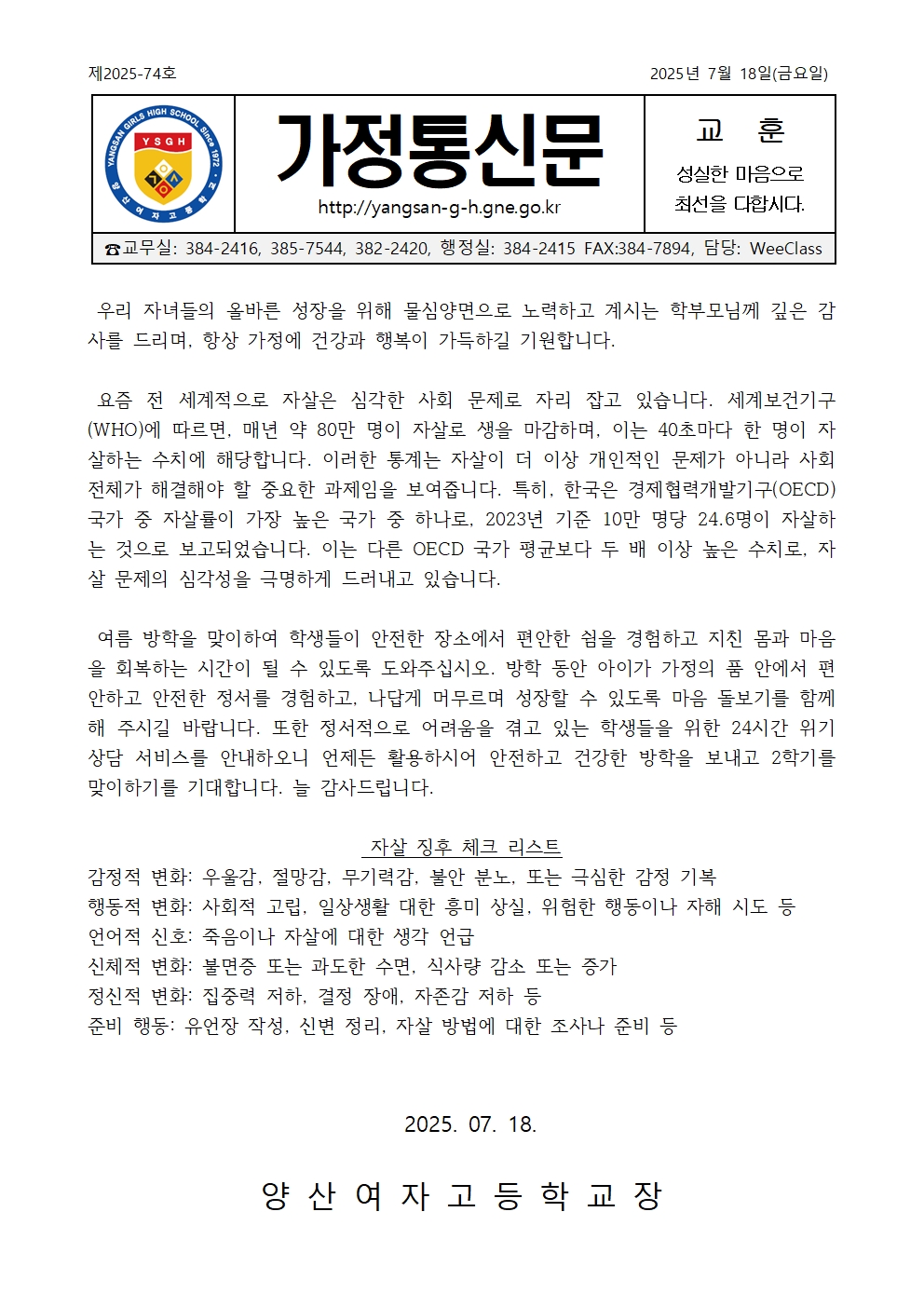 [가정통신문2025-74] 여름방학 맞이 학생정신건강(자살예방) 안내.hwpx
