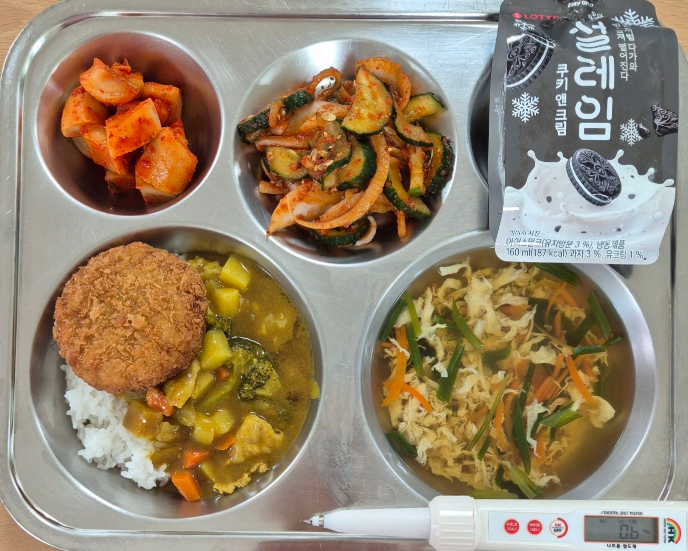 멘츠카츠카레덮밥(1.2.5.6.10.12.13.16.18)계란실파국(1.5.6.9)오이양파무침(13)깍두기(9)망고아이스크림(2)* 에너지/단백질/칼슘/철710.5/23.5/276.6/2.8