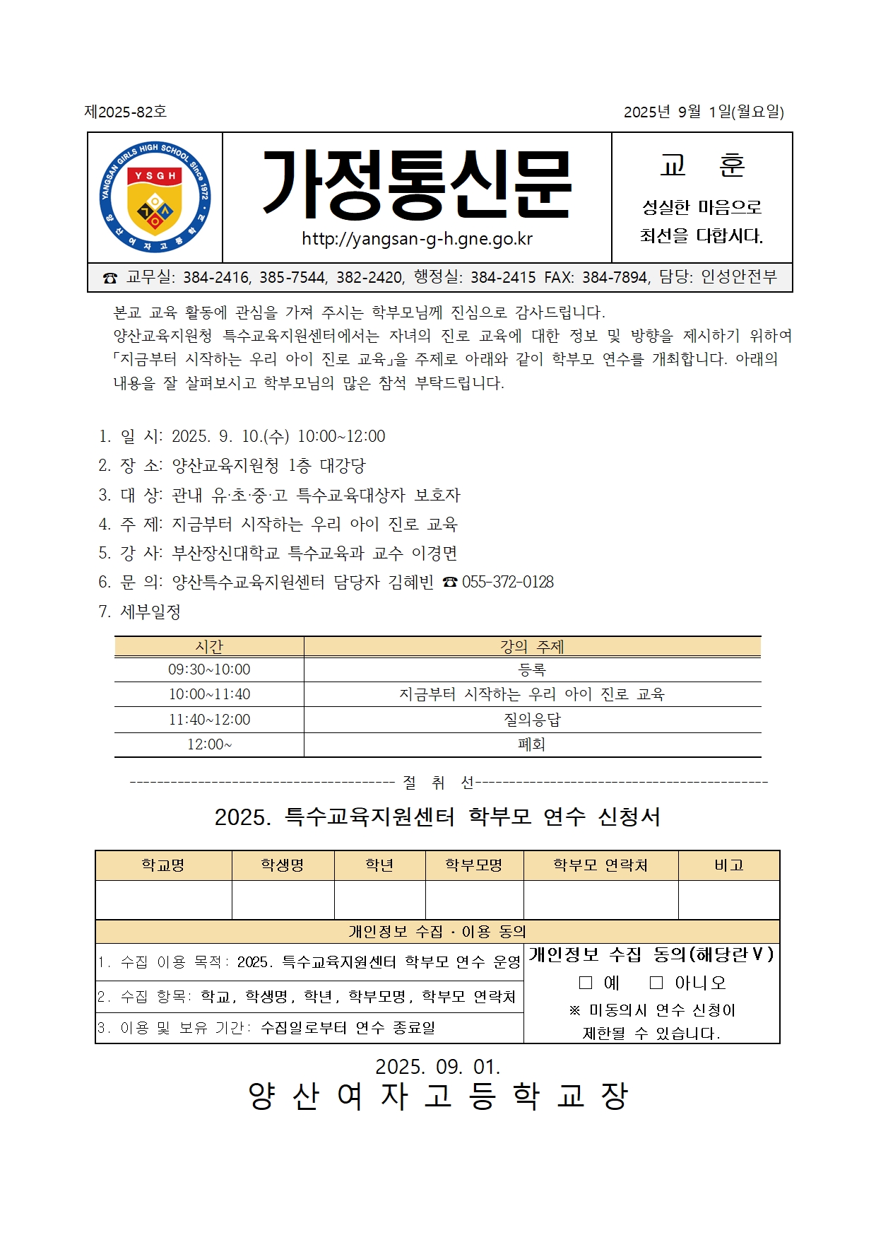 [가정통신문2025-82]2025학년도 특수교육지원센터 학부모 연수 신청 안내.hwp