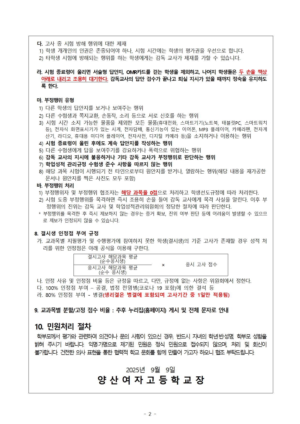 2025학년도 2학기 1회고사 운영계획 안내