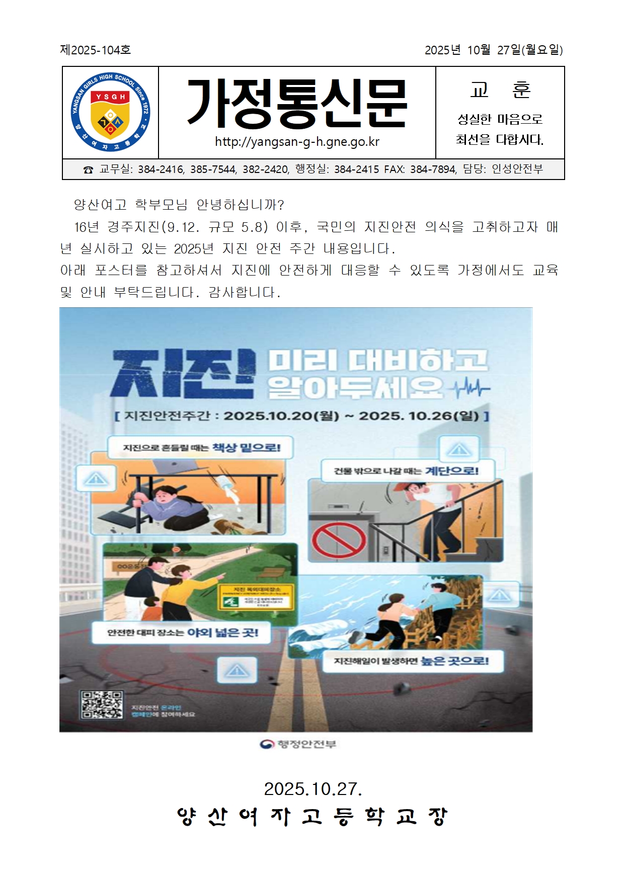 [가정통신문2025-104]지진안전 주간 안내.hwp