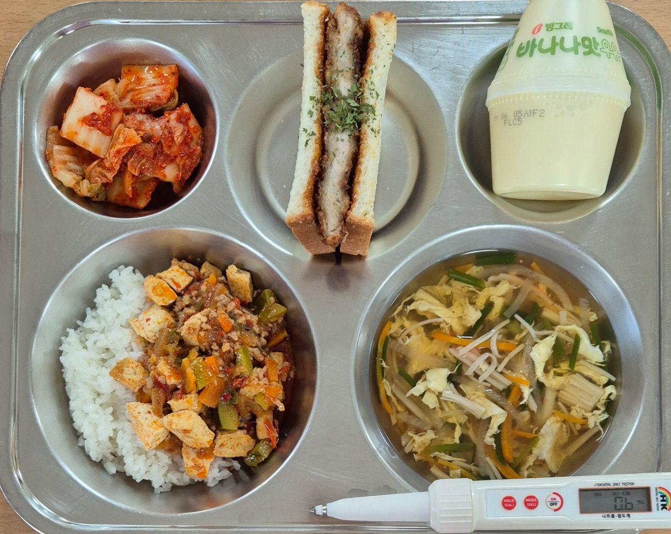 마파두부덮밥(5.6.10.12.13.18)크래미계란국(1.5.6.8.9)배추김치(9)가츠산도(1.2.5.6.10)바나나단지우유(2)* 에너지/단백질/칼슘/철726.3/27.5/228.9/3.4
