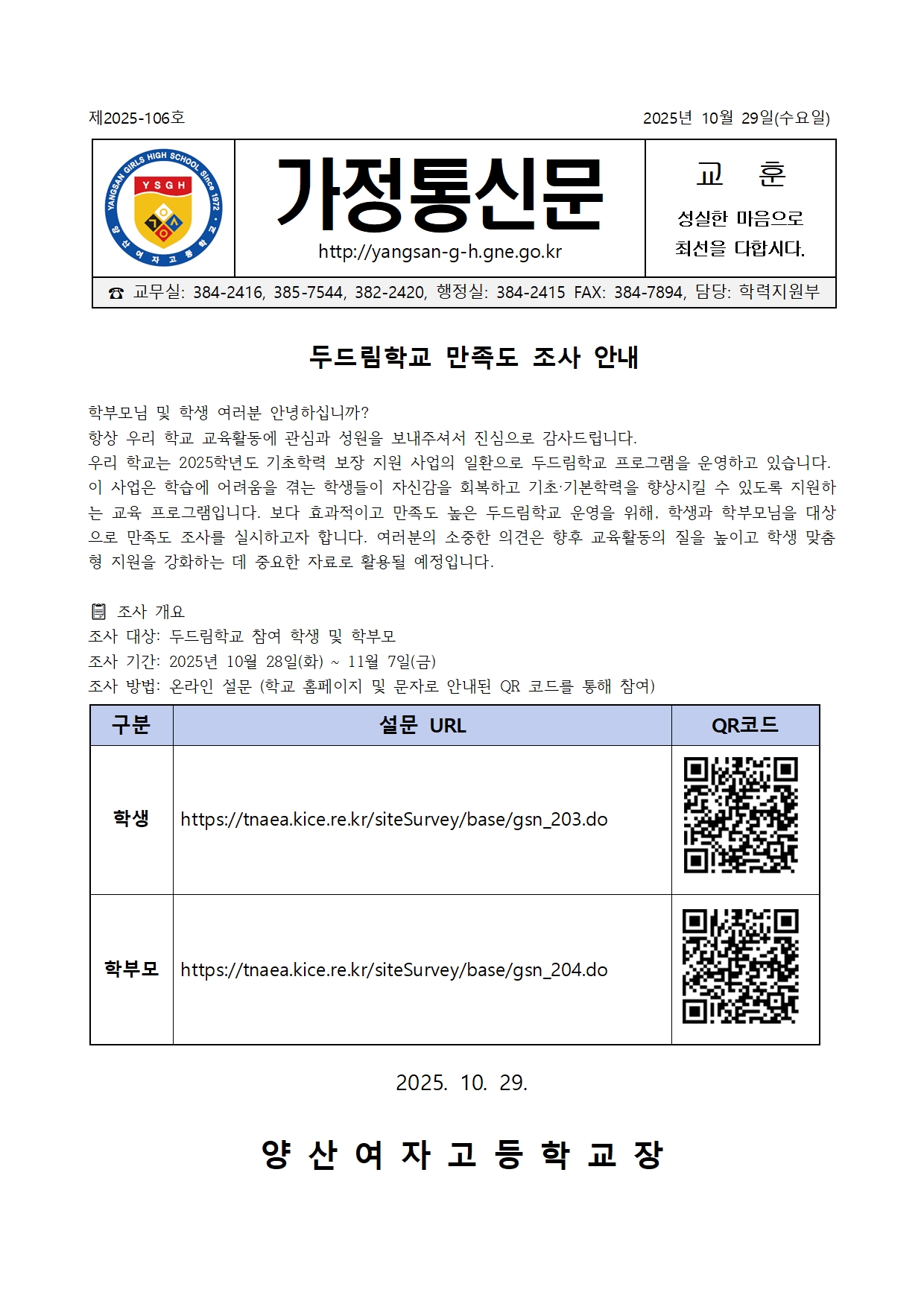 [가정통신문2025-106]두드림학교 만족도 조사.hwp